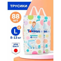 Купить Подгузники трусики детские Tokisan, 8-13 кг размер 4 L, 88шт с индикатором влаги Super Soft, дневные / ночные с доставкой по всей России.