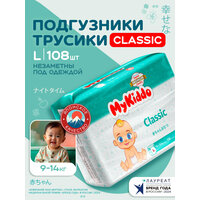 Подгузники трусики 4 L, для детей 9-14 кг, мегабокс 108 шт. (3 упаковки по 36 шт.), MyKiddo, Classic: сравнение цен, характеристики, фото, актуальное наличие и цены.
