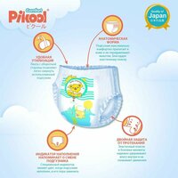 Pikool Comfort (Пикул Комфорт). Линейка продуктов для детей с повышенным уровнем комфорта при использовании. Современные материалы, продуманная конструкция и улучшенные органолептические свойства изделий делают продукты линейки Comfort невероятно приятными к коже, функциональными и безопасными для малышей. Ультра впитывание. Внутренняя система абсорбции обеспечивает быстрое и надежное впитывание влаги. Мягкий внутренний слой. Обеспечивает нежное и деликатное прикосновение к коже ребенка. Супер растягивающийся пояс. Обеспечивает плотное и комфортное прилегание, не сковывая движения ребенка. Распределительный слой. Равномерно распределяет влагу внутри подгузника. Индикатор впитываемости. Показывает когда необходимо заменить подгузник. Дышащий внешний слой. Обеспечивает доступ воздуха к коже ребенка, исключая риск появления раздражений. Многоразовые липучки. Могут быть прикреплены повторно для регулировки облегания подгузника. Система защиты от протекания. Боковые манжеты предотвращают протекание вокруг ножек. Состав: Отбеленная без хлора распушенная целлюлоза, суперабсорбент (ЅAP), нетканый материал, полиэтилен, плавкий клей.