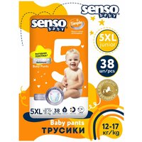 Подгузники-трусики Senso Baby Simple 5XL-Junior (12-17кг) 38шт предназначены для детей весом 12-17 кг, имеют размер 5 и упаковку из 38 штук.