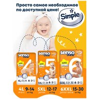 Подгузники-трусики Senso Baby Simple 5XL-Junior (12-17кг) 38шт предназначены для детей весом 12-17 кг, имеют размер 5 и упаковку из 38 штук.