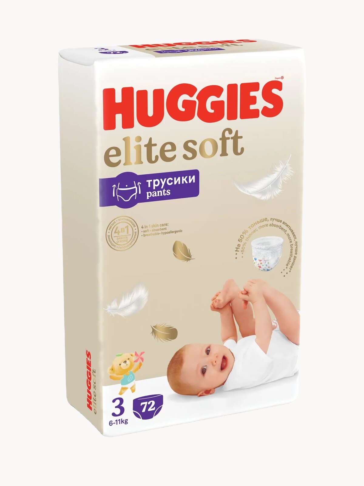 Подгузники трусики Huggies Elite Soft 3 размер подходят как для мальчиков, так и для девочек. Тонкий и мягкий материал подгузников-трусиков Хаггис Элит Софт делает их на 50% тоньше, обеспечивая невесомость для малыша. Супердышащие и впитывающие материалы помогают коже дышать и защищают от протеканий. У подгузников трусиков Хаггис адаптирующийся эластичный поясок для правильной посадки на животике, изменяющемся вместе с малышом. Детские подгузники трусики Huggies Elite Soft созданы с учетом всех деталей, чтобы заботиться о коже ребенка. Они гипоаллергенны и прошли дерматологические тесты, чтобы не вызывать раздражение нежной кожи. Не содержат отдушек, латекса и хлора. Одна из уникальных особенностей подгузников-трусиков Хаггис Элит Софт 3 — двойной дизайн в упаковке. Вы можете выбрать из двух дизайнов, чтобы подчеркнуть стиль ребенка. Индикатор влаги с легкостью подскажет, когда подгузник стоит заменить. Взгляните на него и увидите, как цвет меняется при контакте с жидкостью. Так вы сможете быть уверены, что кожа малыша остается сухой и здоровой. Липучка-утилизатор позволяет легко закрепить использованный подгузник, что упрощает утилизацию. Подгузники Huggies Elite Soft 3 размер подходят для малышей с весом от 6 до 11 кг. В упаковке содержится 72 штуки, что обеспечит вам достаточное количество на длительный период времени.