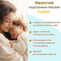 Подгузники трусики Inseense Classic специально созданы для активных деток и отвечают требованиям современных мам. Мягкие и дышащие трусики-подгузники обеспечивают максимальный комфорт и сухость кожи малыша до 12 часов. Универсальная анатомическая форма подходит мальчикам и девочкам. Трусики подгузники Inseense Classic повторяют изгибы тела ребенка. Эластичный поясок плотно прилегает к спинке и животику, не сдавливая и не сползая. Мягкие резиночки вокруг ножек создают дополнительную защиту от протекания. Верхний дышащий слой трусиков изготовлен из мягкого хлопкового материала, который способствует свободной циркуляции воздуха. Внутренний слой, созданный по уникальной технологии Magical tubes, мгновенно впитывает и равномерно распределяет жидкость внутри подгузника, надёжно удерживает ее и обеспечивает сухость кожи ребенка до 12 часов, что делает наши подгузники идеальными для ночного использования. Быстрое впитывание минимизирует контакт кожи ребенка с влагой, защищая от опрелостей и раздражений. Благодаря наличию усиленного впитывающего слоя, кожа малыша будет надежно защищена всю ночь. Структура и расположение каналов детских подгузников Inseense Classic делают внутренний впитывающий слой невероятно гибким и препятствуют провисанию и появлению комков, когда ребенок активен. Индикатор наполнения влаги вовремя подскажет, когда подгузник наполнился и его следует сменить на новый. Детские трусики подгузники Inseense Classic в размере XXL подходят для детей весом от 15 до 30 кг. Продукция для детей, женщин и всей семьи - главное направление производства бренда Inseense. У нас вы найдете товары для детей 0+ и взрослых на любой вкус, в том числе: одноразовые пеленки, подгузники, ультратонкие трусики, влажные салфетки, средства для стирки и ухода, косметику и многое другое.