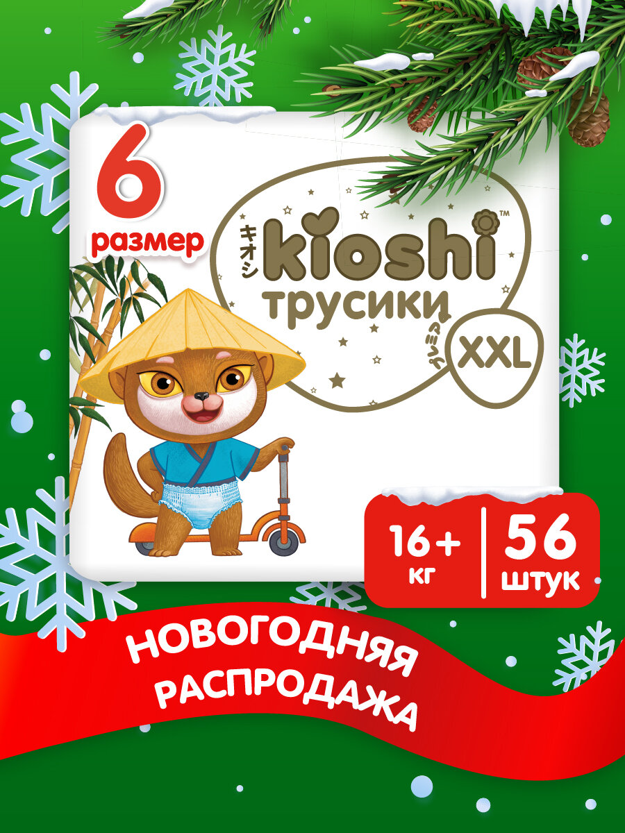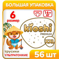 Подгузники KIOSHI Premium Ультратонкие XXL подходят для детей весом 12-18 кг, 56 штук в упаковке. Также у KIOSHI широкая размерная сетка от подгузников для новорожденных до подгузников-трусиков на 18+ кг.