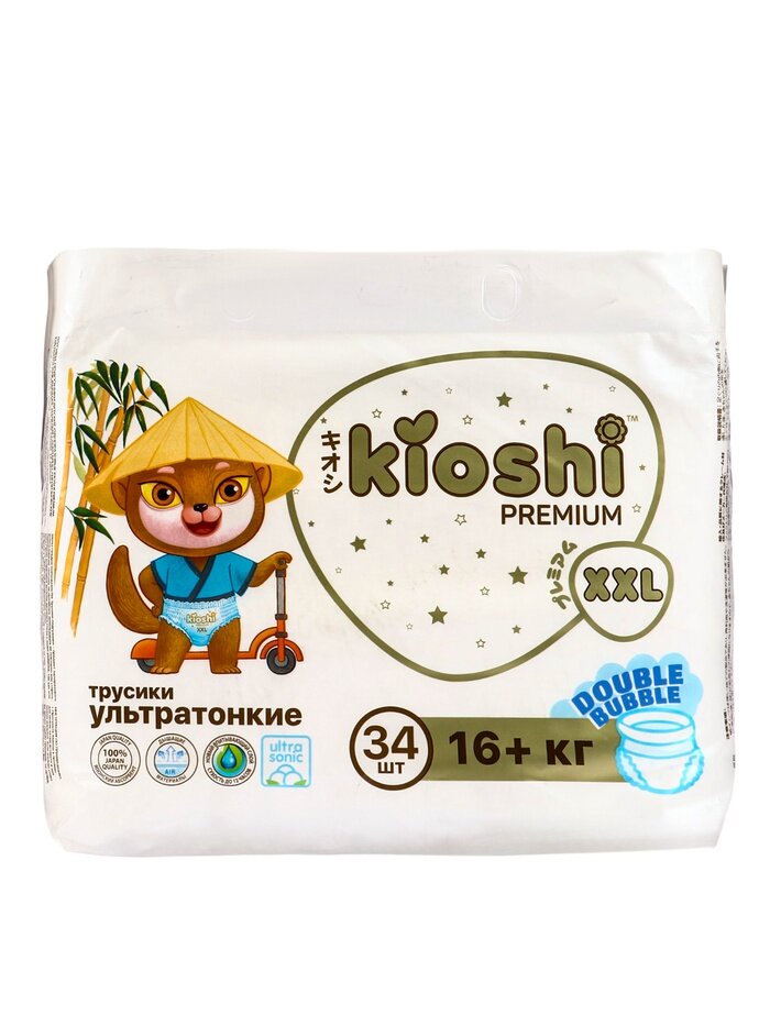 Подгузники-трусики KIOSHI PREMIUM , Ультратонкие, XXL 16+ кг, 34 шт: сравнение цен, характеристики, фото, актуальное наличие и цены.