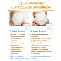 Подгузники-трусики KIOSHI PREMIUM — настоящая находка для современных родителей. Миссия - дарить максимальный комфорт. Благодаря специальному крою, обеспечивающему комфортную посадку без риска протекания, малышу будет удобно и сладко спать и играть.