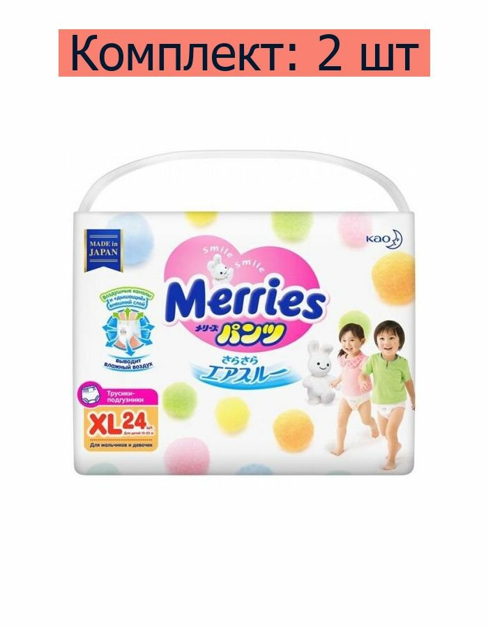 Детские одноразовые японские трусики-подгузники Merries (Меррис) для малышей с весом от 12 до 22 кг (размер XL, 5) созданы с особенной заботой о коже и комфорте Вашего ребёнка. Идеально подойдут малышу, который активно ползает, делает первые шаги и исследует мир вокруг. Merries – победитель премии «Марка №1 в России» в 2022 г. в категории «Подгузники и трусики для детей» и бренд для малышей по признанию мам. Анатомический крой трусиков Меррис, учитывающий все особенности растущего малыша, обеспечивает комфорт и свободу движений ребёнка. Трусики легко снимать, надевать и удобно носить. Они хорошо сидят на талии, не сползают, не жмут и не оставляют следов на нежной коже малыша. Трусики Merries хорошо подходят как дневные подгузники, когда ребёнок максимально подвижен, так и в качестве ночных подгузников, когда малыш дольше не переодевается. Удлинённый впитывающий слой в задней части трусиков предотвращает протекание, когда ребёнок долго лежит на спине. А оборочки нежно облегают ножки и не образуют щелей, даже если ребёнок много ворочается ночью. Гипоаллергенные материалы не вызывают раздражений, опрелостей и дискомфорта. Полимерный абсорбент отлично впитывает большое количество жидкости, превращает её в гель и защищает от протеканий даже при значительном надавливании. Гладкая, шелковистая поверхность из тончайших волокон максимально сокращает трение при движении малыша. Обновлённая технология трёх воздухопроницаемых слоёв сохраняет кожу малыша сухой и здоровой, обеспечивая свободное выведение прелого воздуха из подгузника. Внутренняя поверхность трусиков остаётся удивительно мягкой для кожи ребёнка и не прилипает к попке даже после того, как впитает большой объём жидкости. Трёхполосный индикатор наполнения легко проверить, не раздевая полностью малыша. Если полоски сменили цвет, трусики пора заменить на новые. Мягкий эластичный поясок не давит на животик и растягивается в 2,5 раза, что позволяет легко сменить трусики, когда малыш лежит. Ультразвуковой метод соединения боковых швов делает шов более мягким. Теперь при смене подгузника он разрывается ещё легче, а при ношении трусиков не ощутим для малыша, не натирает и не оставляет следов на коже. Эластичная лента для утилизации растягивается в 2 раза и надёжно фиксирует даже переполненный подгузник. Более широкий впитывающий слой по всей области между ножек не позволяет жидкости скапливается в одном месте, поэтому трусики не сбиваются в комок, не провисают и не создают дискомфорта, даже когда они уже наполнены. Трусики Merries подходят для девочек и для мальчиков. Не требуют использования защитных кремов и присыпок.