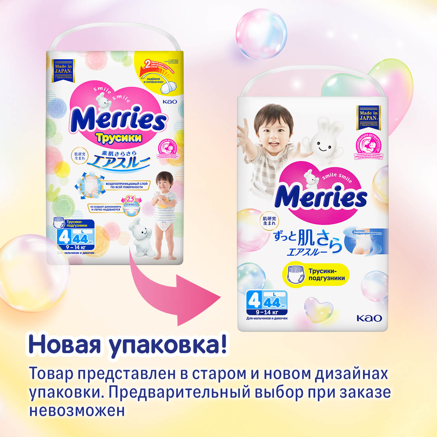 Подгузники-трусики Merries, размер L (9-14 кг), 44 шт 920347 .