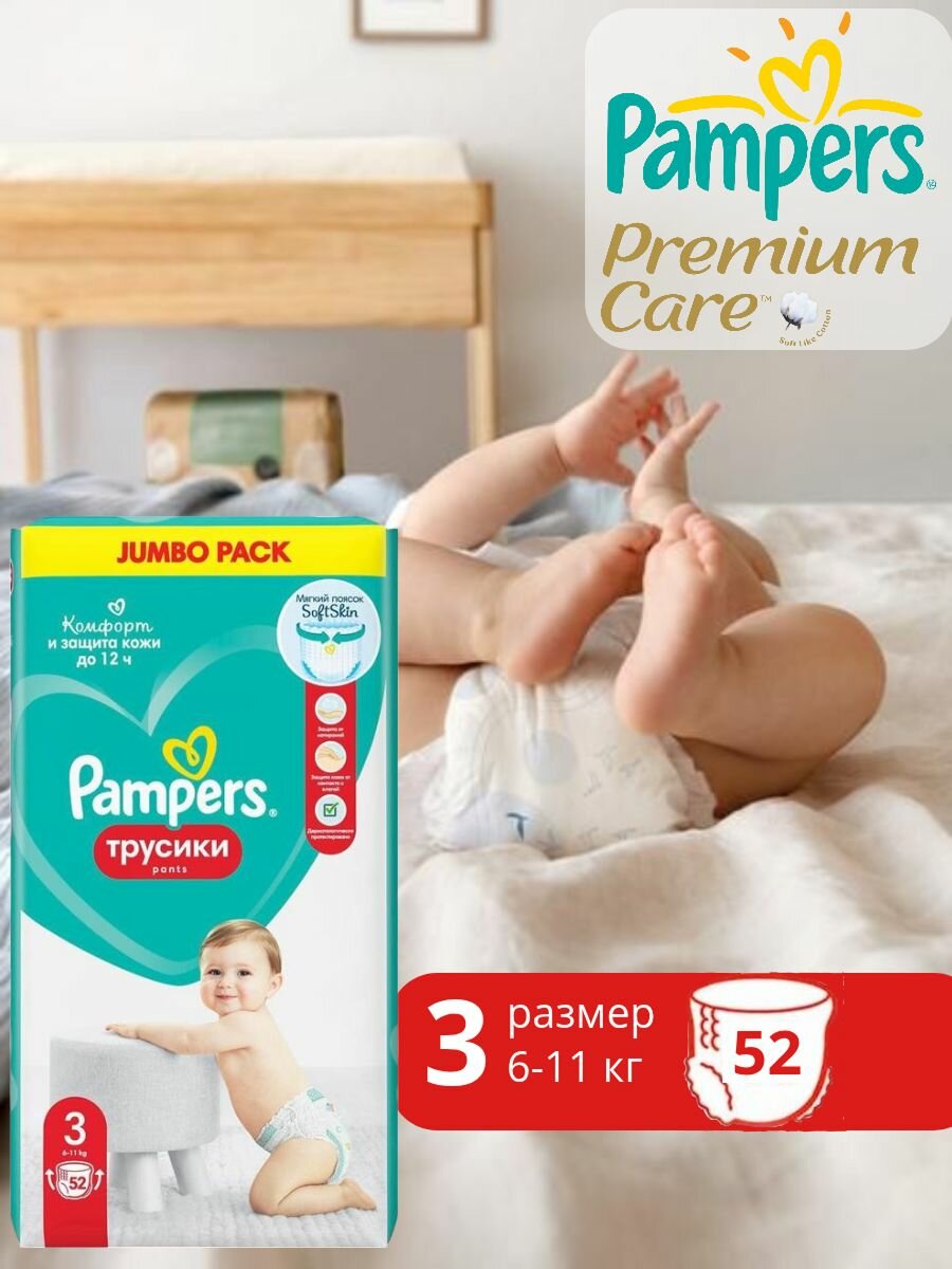 Подгузники трусики Pampers Premium Care 3 размер, 6-11 кг, 52 шт, ультрамягкие: сравнение цен, характеристики, фото, актуальное наличие и цены.