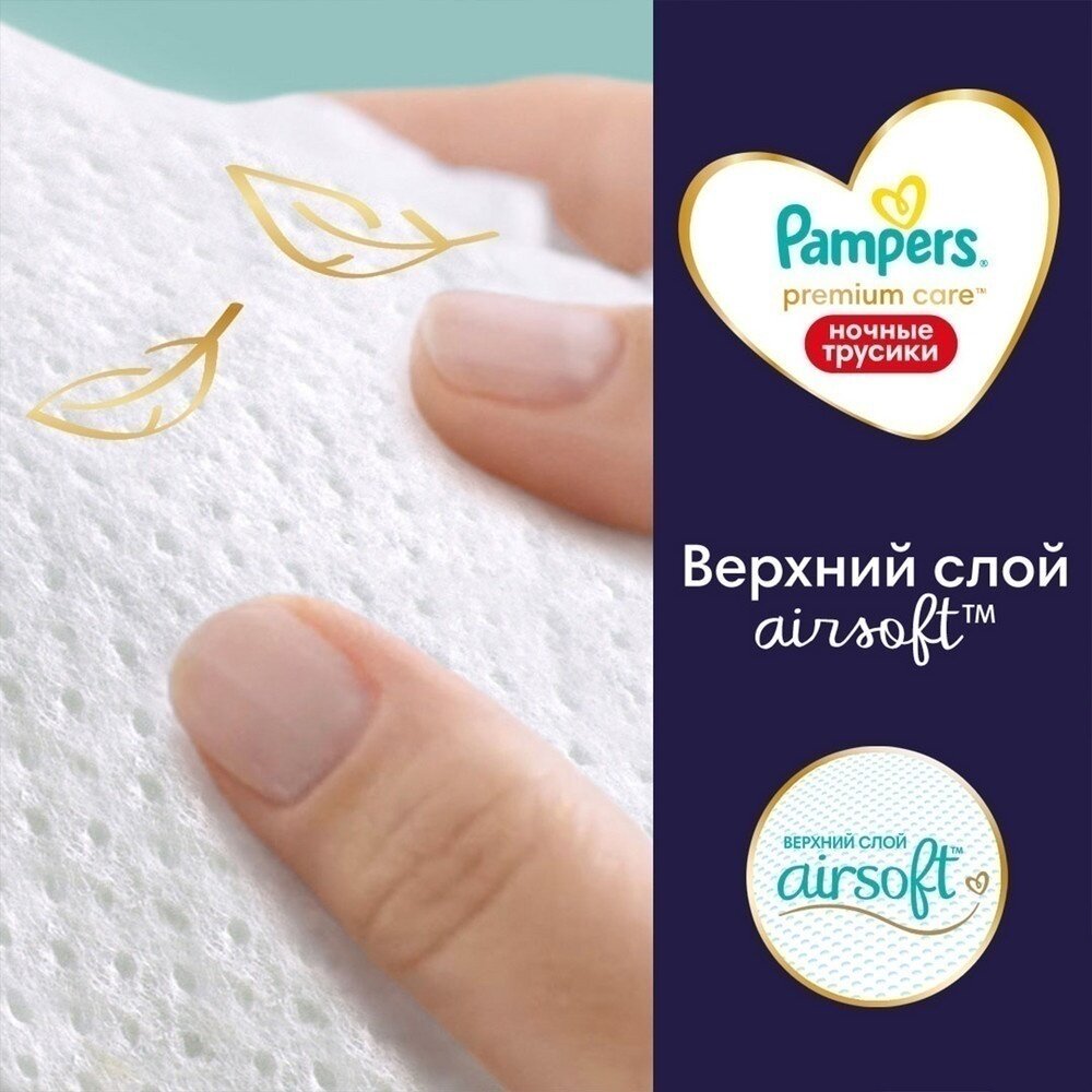 ВАУ-новинка от Pampers Premium Care: ночные трусики - наши №1 по мягкости и защите на всю ночь. Они дарят непревзойденный комфорт благодаря новому мягкому и дышащему верхнему слою Airsoft, который защищает нежную кожу малыша от контакта с влагой. Благодаря усиленному впитыванию трусики обеспечивают дополнительную защиту кожи от влаги* и комфорт кожи на всю ночь. Их мягкие двойные бортики вокруг ножек надежно защищают от протеканий на всю ночь. А еще ночные трусики Pampers Premium Care не содержат отдушек!* по сравнению с трусиками Premium Care - Ночные Трусики Pampers Premium Care - наши трусики №1 по мягкости и защите на всю ночь. (по сравнению с трусиками Premium Care) - Мягкий и дышащий верхний слой Airsoft защищает нежную кожу малыша от контакта с влагой - Благодаря усиленному впитыванию трусики обеспечивают дополнительную защиту кожи от влаги* и комфорт кожи на всю ночь - Двойные мягкие бортики вокруг ножек защищают от протеканий - 0% отдушек - Индикатор влаги - Стильные ночные дизайны - Легко надевать одним движением. Легко снимать: просто разорвите трусики по боковому шву. Легко утилизировать: просто сверните и закрепите лентой-липучкой Размер подгузника: 6/XXL (17+ кг); Состав: Petrolatum, stearyl alcohol, paraffinum liquidum, aloe barbadensis leaf extract; Количество в упаковке, шт: 18; Для приучения к горшку: Нет; Особое применение подгузников: Ночные;