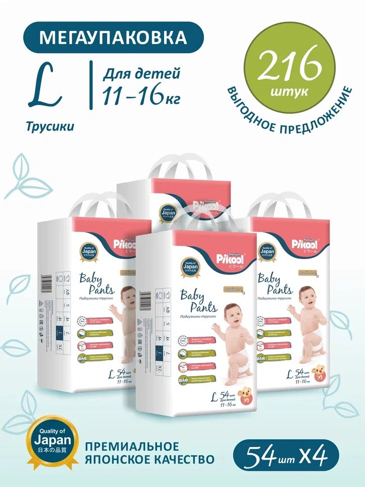 Подгузники-трусики Pikool Premium, размер L (11-16кг), 4 х 54 шт/ 216 шт.: сравнение цен, характеристики, фото, актуальное наличие и цены.