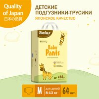 Купить Твинс / Подгузники-трусики детские Twins M (8-13 кг) 64 штуки / дешевые памперсы трусы детские с доставкой по всей России.