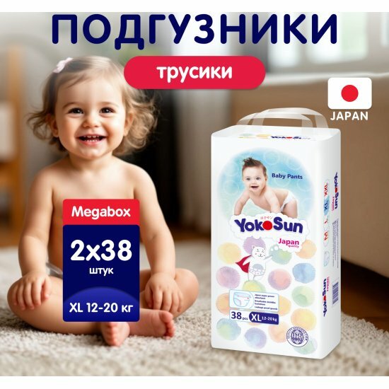 Подгузники-трусики Yokosun XL (12-20 кг) 76 шт: сравнение цен, характеристики, фото, актуальное наличие и цены.