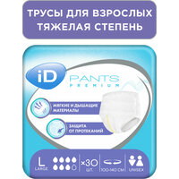 Подгузники трусики для взрослых размер L iD Pants Premium - это комфортное и бюджетное решение для людей, желающих надёжно скрыть проявления недержания малой, средней и тяжёлой степени. Упаковка состоит из 30 штук унисекс трусиков размера L (large) (3). Вся продукция iD протестирована дерматологами и не вызывает раздражений. Впитывающие трусы памперсы размер large супер качества с надёжными резинками фиксаторами для взрослых подойдут для мужчин и для женщин. Послеродовые одноразовые трусы удобно взять с собой в роддом. Удобно использовать как послеродовые одноразовые трусы, и для дневной и ночной защиты от протеканий девушек во время месячных при обильных менструальных выделениях. Так же обеспечат надёжный барьер от протеканий на ночь при более скудных выделениях. Одноразовые трусики подгузники для взрослых и малоподвижных людей подойдут для использования во время длительных медицинских процедур, исключающих возможности передвижения пациента, например, длительные капельницы. Памперсы трусы для взрослого айди пантс размер л достаточно тонкие, чтобы быть незаметными под летней одеждой. Универсальное средство личной гигиены, памперсы трусики для взрослого L подойдут на обхват талии 100-140 см. "Особенности конструкции iD PANTS Premium позволили сделать все ключевые преимущества индивидуальных впитывающих гигиенических средств доступными, по более дешевой цене. Дешевые подгузники бренда ID не уступают по качеству более дорогим брендам. Многоуровневый впитывающий слой обеспечивает высокую скорость абсорбции даже больших объёмов жидкости и превращение её в гель. Особый состав впитывающего слоя препятствует образованию аммиака, а значит – распространению неприятных запахов. Создатели подгузников-трусов айди пантс разработали надёжную многоступенчатую защиту от протеканий в виде влагонепроницаемых бортиков, мощного впитывающего слоя и плотного прилегания изделия к изгибам тела. Более частая смена pampers помогает защитить чувствительную кожу промежности от воздействия перегрева, опрелостей и повышенной влажности каждый день." Подгузники-трусы айди пантс премиум соединили в себе комфорт привычного нижнего белья и высокую впитывающую способность. Они имеют мягкий дышащий внутренний слой, моментально нейтрализуют неприятные запахи и повторяют все изгибы тела, сохраняя плотное прилегание даже при активном движении. Изделие отличается повышенной скоростью впитывания влаги, благодаря улучшенному абсорбирующему слою. А наличие индикатора наполнения подгузника помогает легко понять, когда пора сменить изделие на новое. Чтобы подгузники-трусы еще проще стало надевать, на поясе со стороны спины размещен специальный индикатор. Дышащие эластичные плотные урологические медицинские изделия производства бельгийского бренда в стиле одноразовых трусов - комфортная защита для взрослых людей от недержания мочи маленькой, средней и большой степени. Анатомическая форма трусиков айди пантс премиум плотно прилегает, удерживает влагу, блокирует запахи и впитывает ночные выделения. Все эти защитные свойства подойдут для медицинской реабилитации, для здоровья промежности лежачих больных, инвалидов, пожилых мужчин и женщин. Памперсы для взрослого человека выполнены из мягких нетканых водонепроницаемых материалов и гипоаллергенны. Днем носятся