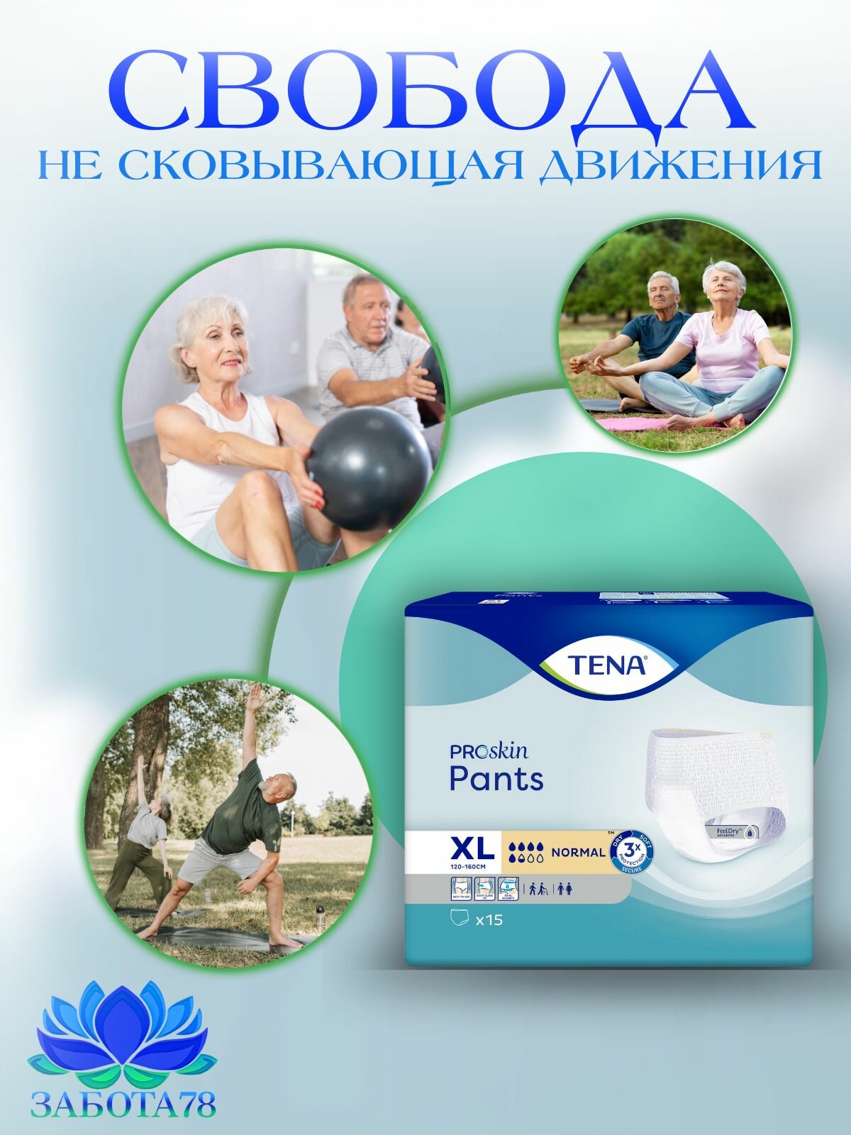 Подгузники-трусы TENA Pants Normal (ТЕНА Пантс Нормал) похожи на обычное белье и созданы специально для подвижных женщин и мужчин с недержанием средней степени. Они обеспечивают сухость, мягкость и предотвращение протеканий.