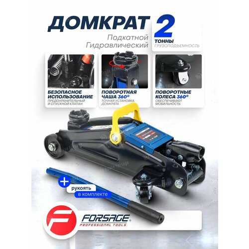 Домкрат подкатной гидравлический бренда от Forsage - универсальный и мощный инструмент, который станет вашим надежным помощником в любой автомобильной задаче. Устройство спроектировано с учетом потребностей современных автомехаников и автолюбителей, предлагая сочетание прочности, компактности и простоты использования. Максимальная грузоподъёмность составляет 2 тонны. Высота подъема - 340 мм. Высота подхвата - 130 мм. Вес устройства составляет 8 кг. Конструкция включает 4 стальных колеса (2 поворотных), что позволяет легко и удобно работать с авто. Благодаря предохранительному клапану устройство соответствует стандарту безопасности. Модель подходит для работы с низкопрофильными машинами. Он легко поместится в багажнике или на полке в гараже. Гидравлический механизм обеспечивает быстрое и плавное поднятие, позволяя вам легко выполнять ремонт, замену шин или другие работы, требующие подъема. Изготовлен из высококачественных материалов, обеспечивая надежность и долговечность. Устойчивость к износу и коррозии позволяет использовать его в любых условиях. Автомобильный домкрат Forsage — это идеальное решение для тех, кто ценит надежность, эффективность и удобство. С ним любой автомобильный ремонт станет проще и безопаснее, будь то в гараже или путешествии.