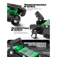 Автомобильный домкрат имеет два поворотных колеса на 360 градусов и 2 фиксированных для маневренности.
