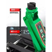 Компактная конструкция позволяет с легкостью разместить подкатной домкрат гидравлический в багажнике автомобиля. Встроена эргономичная профилированная ручка, которая дает удобство при переноске.
