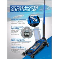 Домкрат подкатной гидравлический двухпоршневой 3т низкопрофильный с прорезиненной накладкой на рукоятке, от бренда FORSAGE. Имеет высоту подхвата от 75 мм до 510 мм. Это позволяет использовать его для подъема различных типов автомобилей, включая низкопрофильные модели. Домкрат оснащен двумя поршнями, что обеспечивает более равномерное распределение нагрузки и повышает его стабильность во время подъема. Прорезиненная накладка на рукоятке обеспечивает удобство и комфорт при использовании. Мобильность и надежность: домкрат оснащен 2 фиксированными и 2 поворотными колесами, поэтому его можно легко перемещать. Благодаря предохранительному клапану домкрат соответствует стандарту безопасности. Особенность конструкции - низкий профиль: подходит для авто с низким клиренсом. В комплекте прочная резиновая накладка, которая предотвращает от повреждения автомобиля: исключает возможность повредить кузов, предохраняет от самопроизвольного соскальзывания.