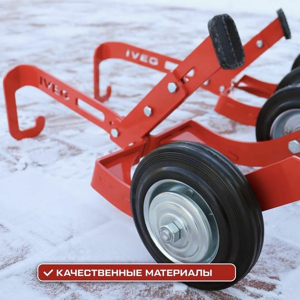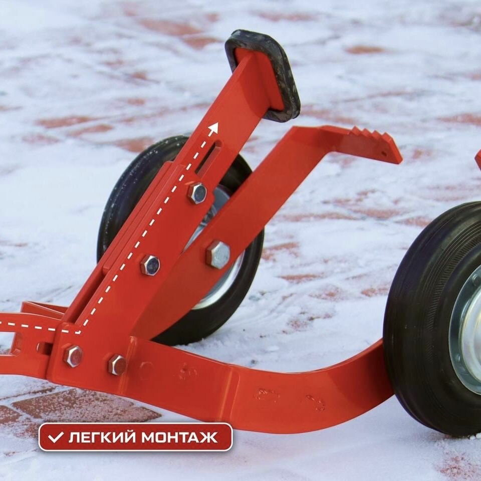 Усиленные подкаты позволяют легко перемещать ваш снегоход на любом покрытии , а дополнительный упор надежно фиксирует подкат на лыже Изготовлены из толстого металла, они выдерживают любые нагрузки и гарантируют долгий срок службы. Каждая деталь проходит пескоструйную обработку для максимальной защиты от коррозии, а покрытие выполняется автомобильной краской высокого качества, что обеспечивает идеальный внешний вид и устойчивость к внешним воздействиям. Большие колеса позволяют легко перемещать снегоход по любой поверхности, обеспечивая удобство эксплуатации.
