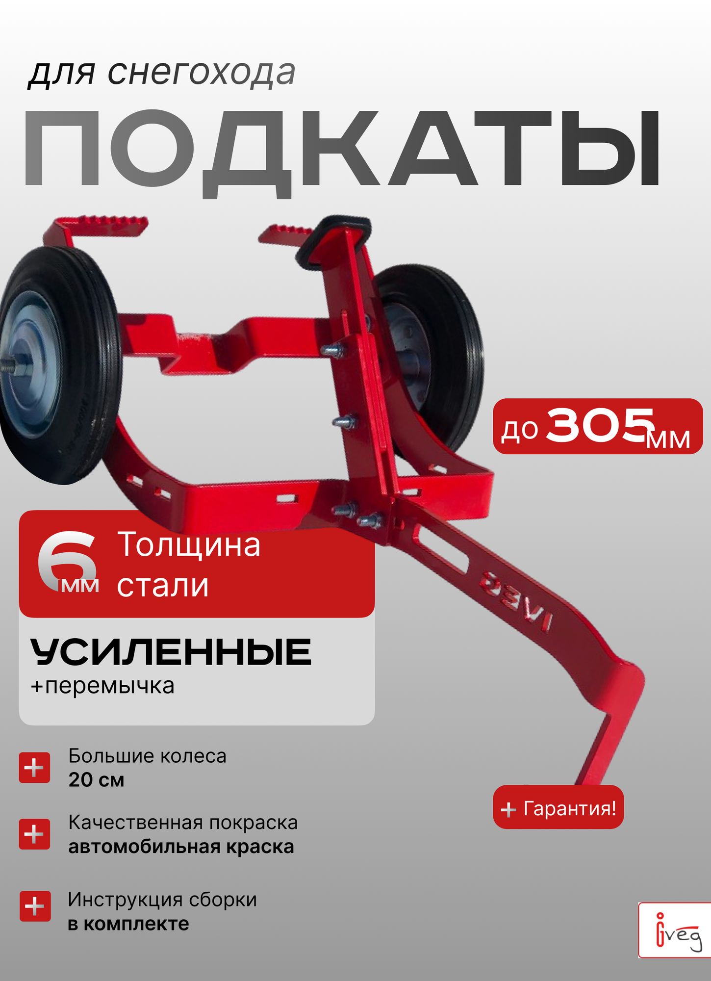 Внимательно выбирайте ширину подкатов для Вашего снегохода, она указана на обложке товара (до 205мм или 305мм)!