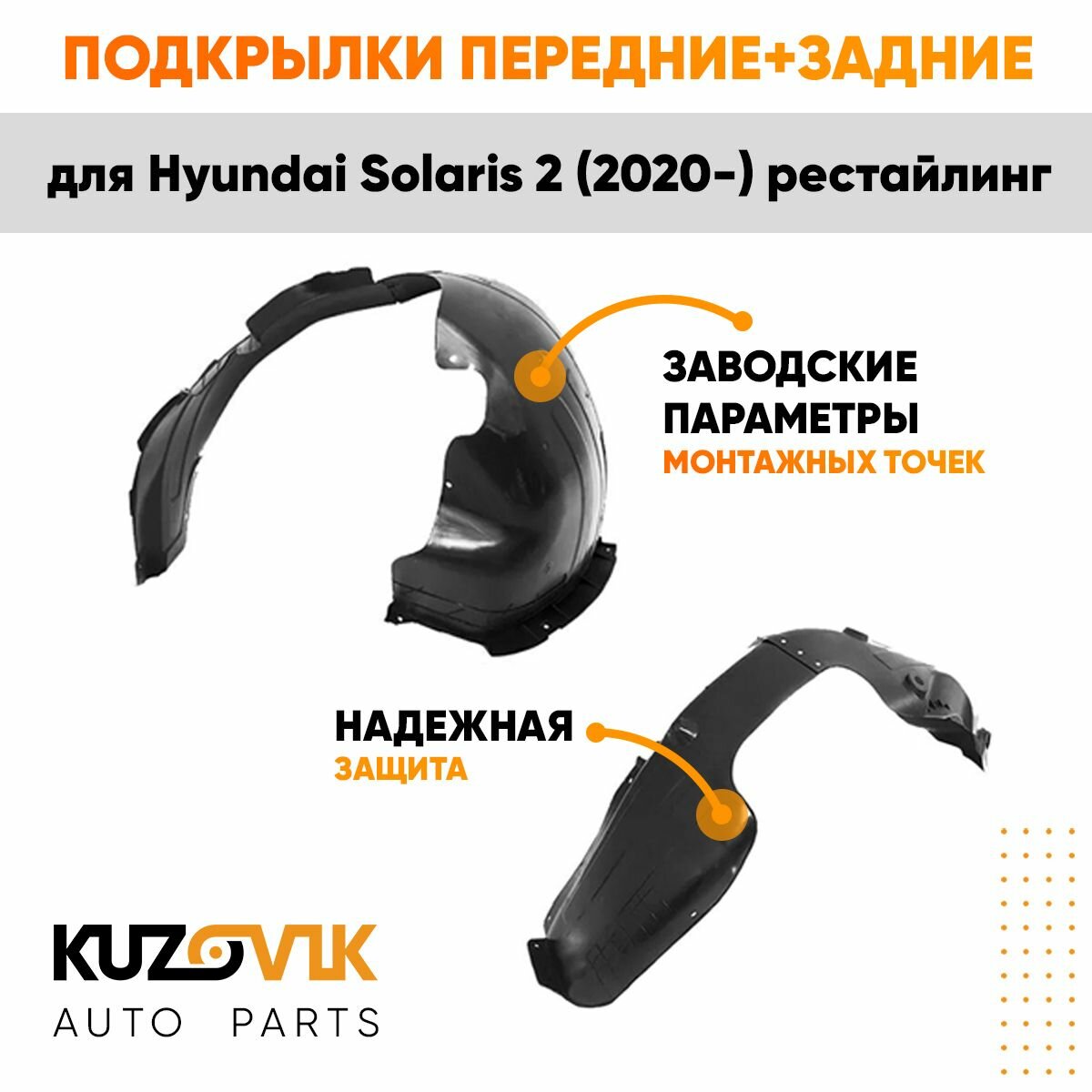 Купить Подкрылки для Хендай Солярис Hyundai Solaris 2 (2020-) рестайлинг 4 штуки комплект передние + задние, локер, защита крыла с доставкой по всей России.