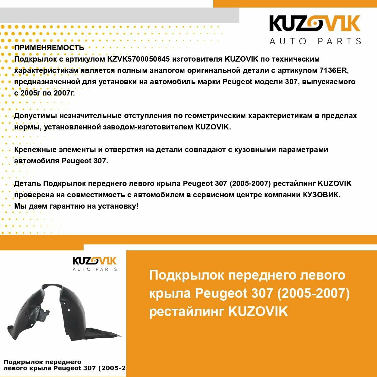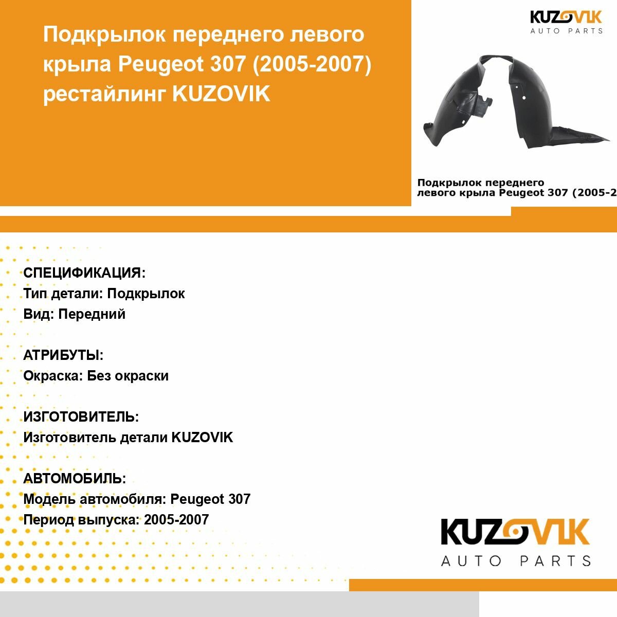 Подкрылки передние Peugeot 307 (2005-2007) рестайлинг 2 шт комплект левый + правый: сравнение цен, характеристики, фото, актуальное наличие и цены.