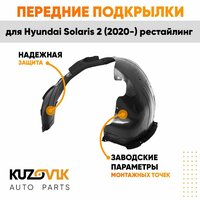 Подкрылки передние для Хендай Солярис Hyundai Solaris 2 (2020-) рестайлинг комплект левый + правый 2 штуки, локер, защита крыла: сравнение цен, характеристики, фото, актуальное наличие и цены.