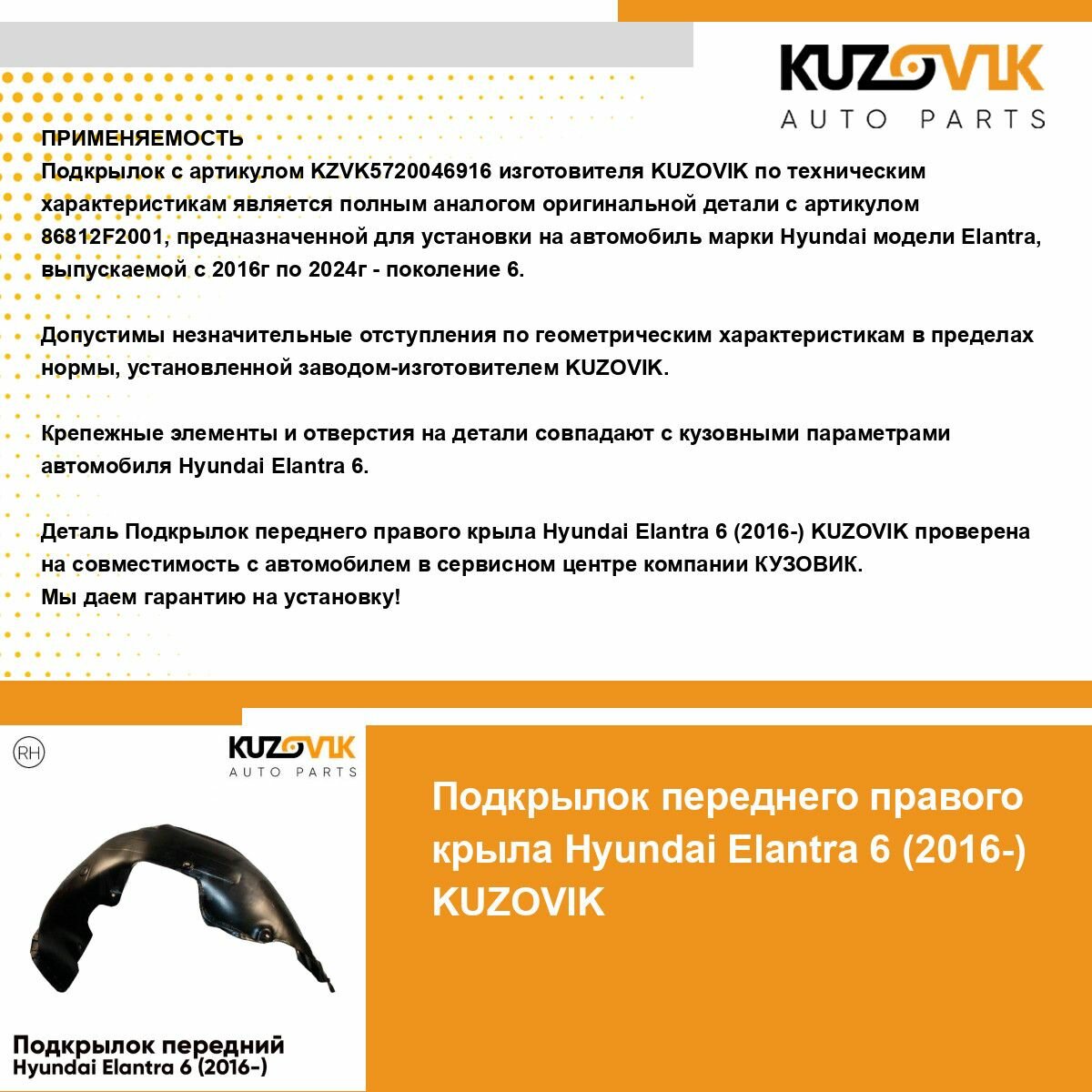 Подкрылок передний для Хендай Элантра Hyundai Elantra AD (2016-2020) правый: сравнение цен, характеристики, фото, актуальное наличие и цены.