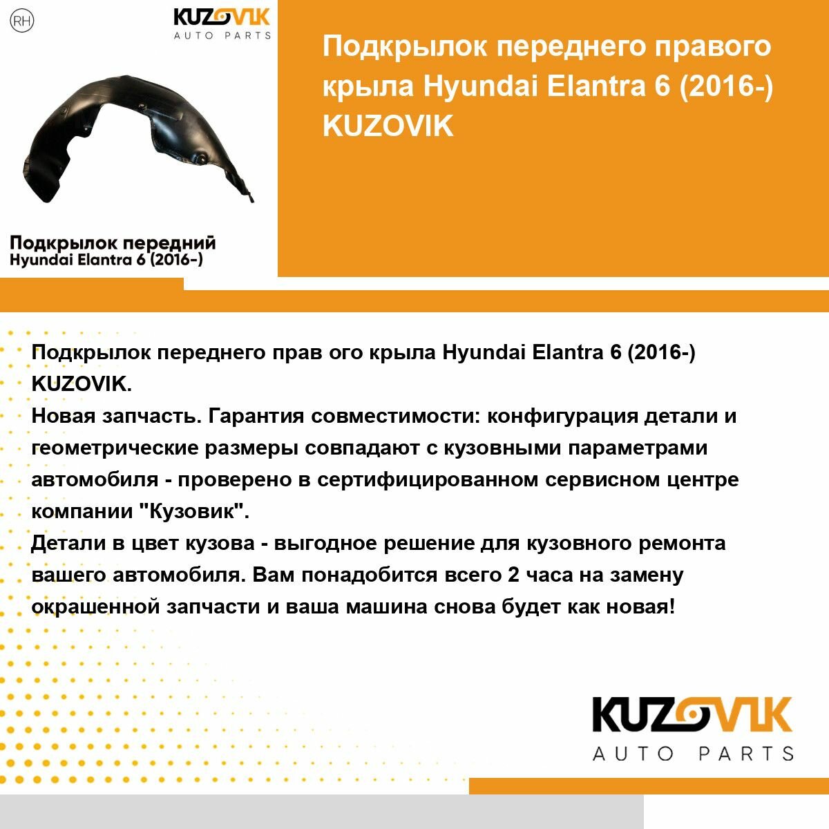 Купить Подкрылок передний для Хендай Элантра Hyundai Elantra AD (2016-2020) правый с доставкой по всей России.