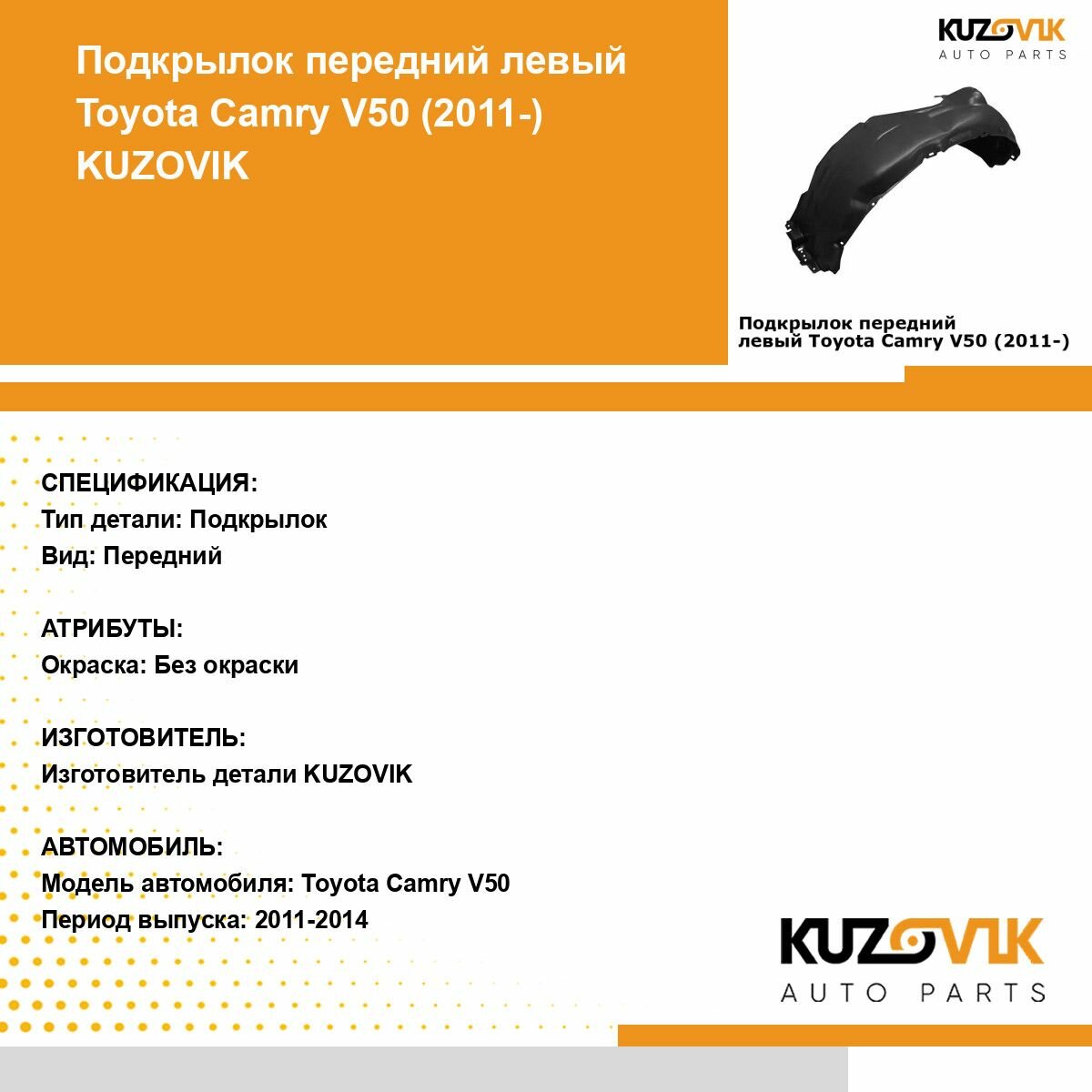 Подкрылок передний левый для Тойота Камри в50 Toyota Camry V50 (2011-2014), локер, защита крыла: сравнение цен, характеристики, фото, актуальное наличие и цены.