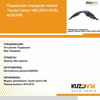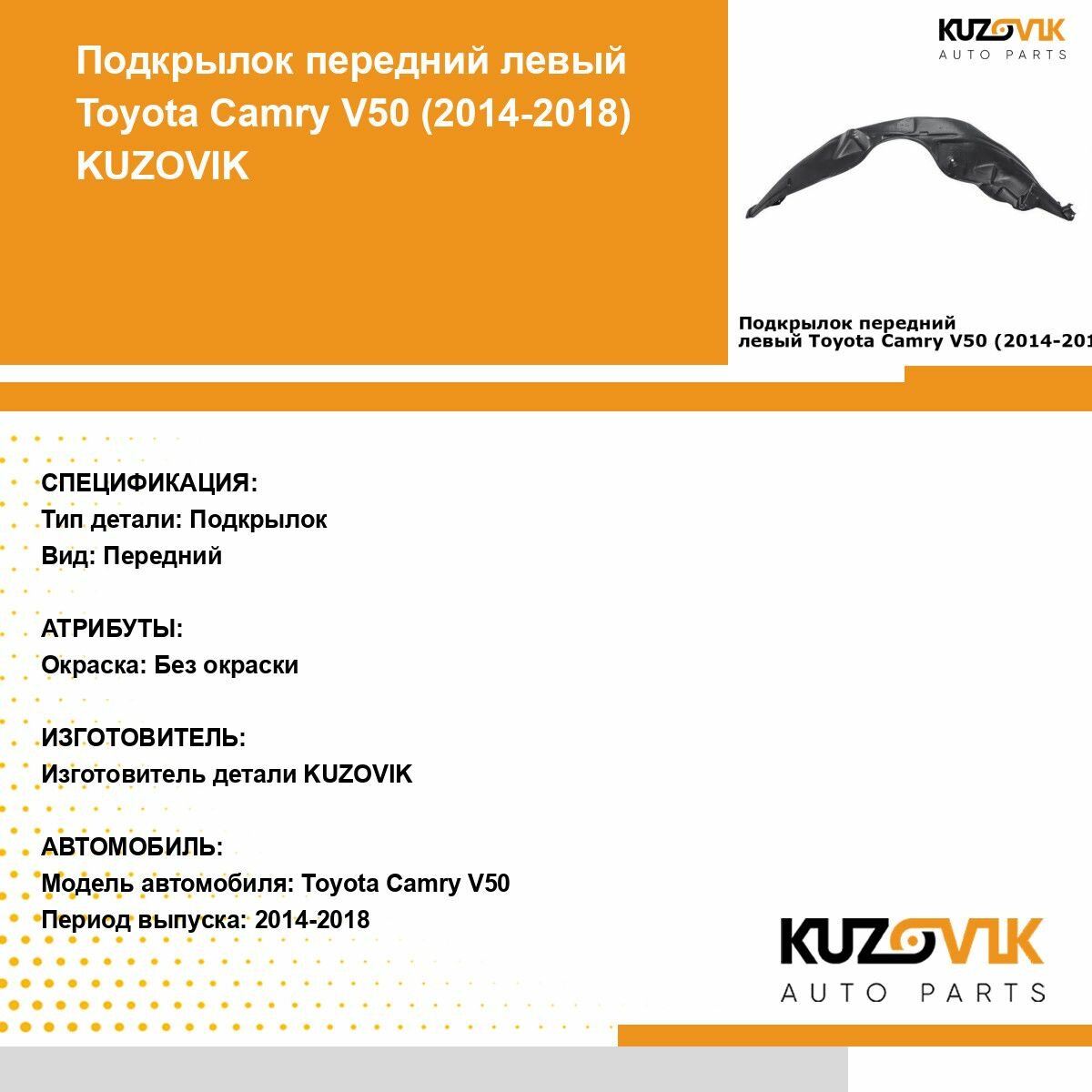 Купить Подкрылок передний левый Toyota Camry V50 Тойота Камри В50 (2014-2018) с доставкой по всей России. Подкрылок передний левый Toyota Camry V50 Тойота Камри В50 (2014-2018): сравнение цен, характеристики, фото, актуальное наличие и цены.