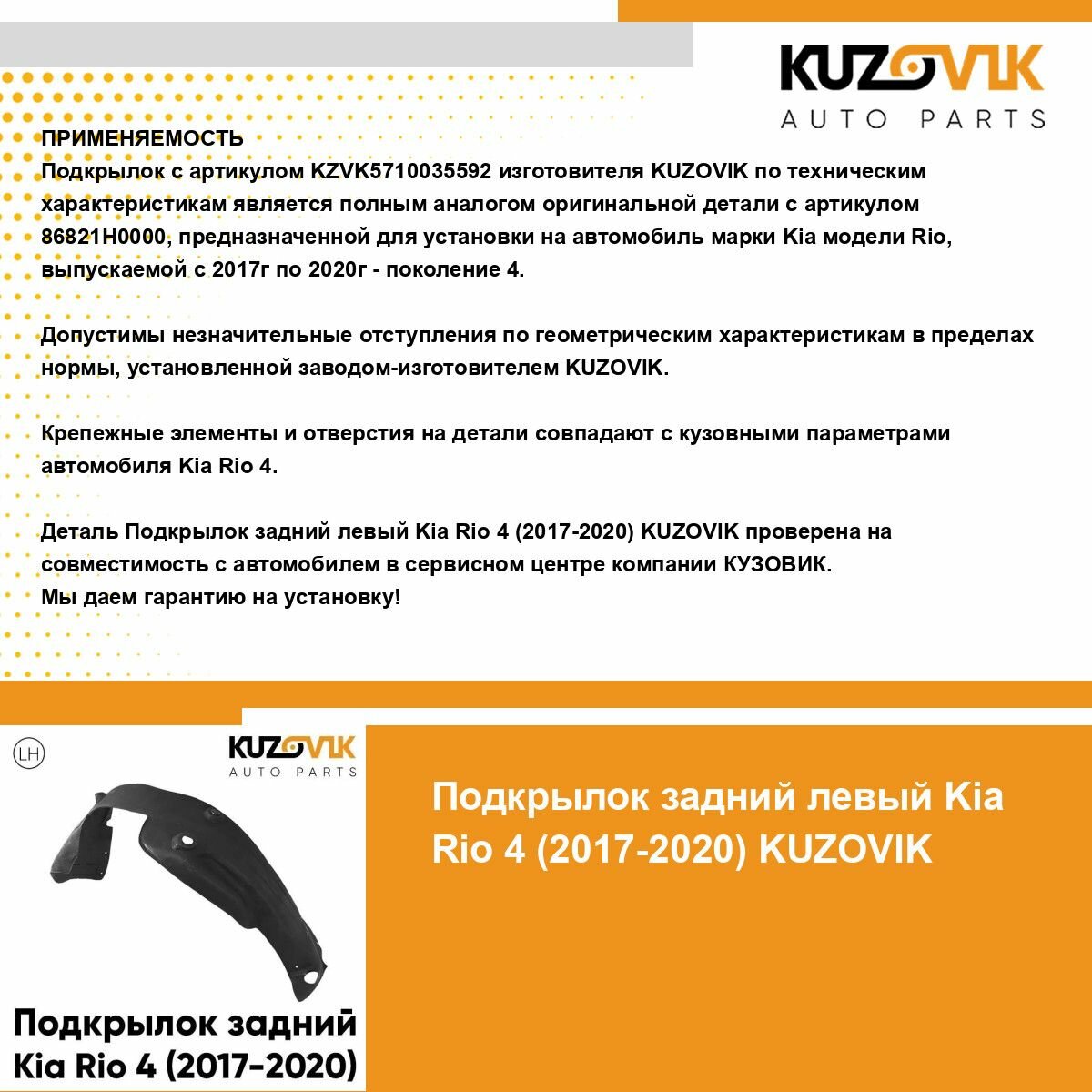 Подкрылок задний для Киа Рио Kia Rio 4 (2017-2020) левый, локер, защита крыла: сравнение цен, характеристики, фото, актуальное наличие и цены.