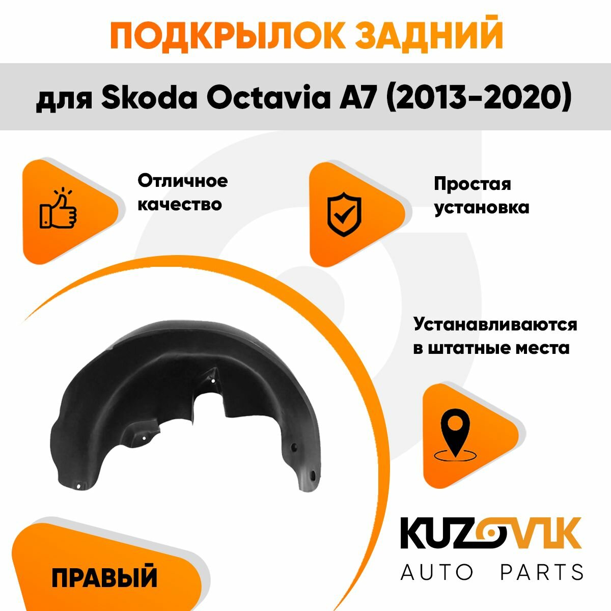 Задний правый подкрылок для Skoda Octavia A7 (2013-2020) — надежная защита от грязи, влаги и сколов. Каждая поездка в дождь или по гравийной дороге подвергает колесные арки вашего Skoda Octavia A7 серьезным испытаниям. Влага, песок, реагенты и мелкие камни постепенно делают свое дело, приводя к появлению сколов и, что гораздо серьезнее, — очагов коррозии. Установка подкрылка — простое и разумное решение, которое поможет сохранить вид и целостность кузова вашего автомобиля на долгие годы. Задний правый подкрылок для Шкода Октавия А7 (2013-2020) надежно закрывает внутреннюю поверхность арки от грязи, воды и абразивных частиц, предотвращая образование ржавчины и повреждение лакокрасочного покрытия. Он защищает не только кузов, но и элементы подвески от агрессивного воздействия окружающей среды. Артикул подкрылка KZVK5720049867 имеет OEM номер 5E0810970B. Простота монтажа позволяет легко установить локер без необходимости доработок или дополнительных затрат. Это не просто аксессуар, а практичное вложение в сохранность вашего автомобиля. С этой защитой арки для Skoda Octavia A7 вы можете быть уверены, что надежно защитите свой авто от преждевременного износа. Выбирайте проверенные решения для комфортной и безопасной эксплуатации вашего автомобиля. Деталь подходит для установки на Skoda Octavia A7 2013 , 2014 , 2015 , 2016 , 2017 , 2018 , 2019 , 2020 годов выпуска. Деталь подходит для установки на Шкода Октавия А7 2013 , 2014 , 2015 , 2016 , 2017 , 2018 , 2019 , 2020 годов выпуска.
