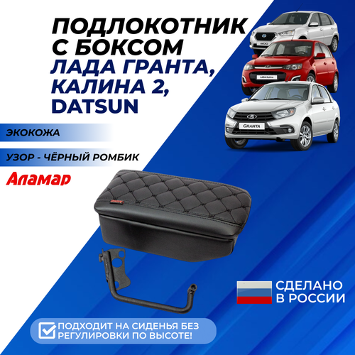 Цена указана за Подлокотник Гранта, Granta FL, Калина 2, Датсун с боксом центральный Аламар экокожа черная отстрочка, к переднему сиденью без регулировки по высоте