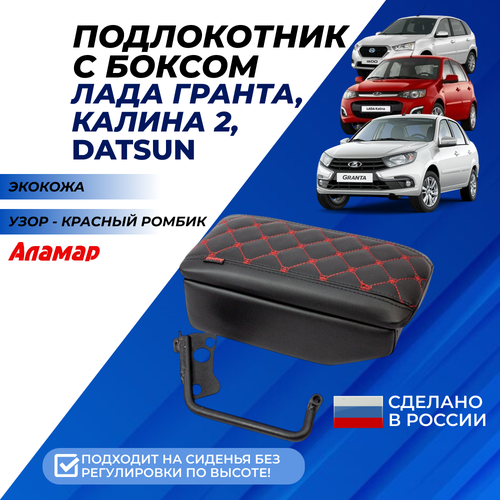 Цена указана за Подлокотник Гранта, Granta FL, Калина 2, Датсун с боксом центральный Аламар экокожа красная отстрочка, к переднему сиденью без регулировки по высоте