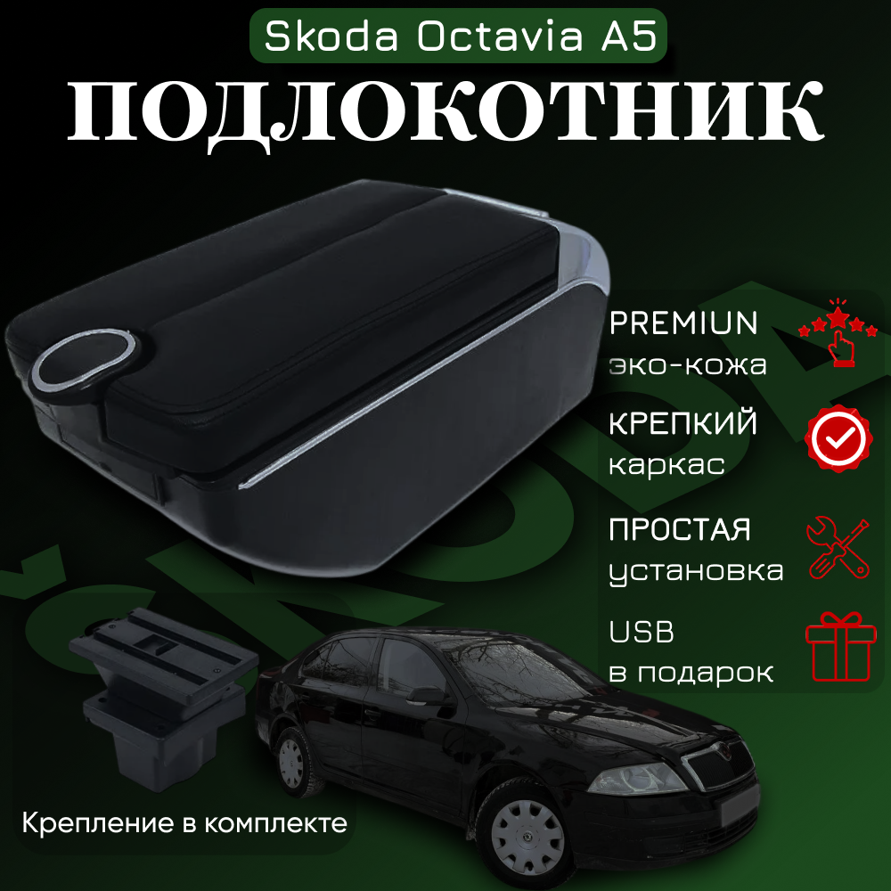 Подлокотник с органайзером для Skoda Octavia A5 2005-2012, крепление в подстаканниках: сравнение цен, характеристики, фото, актуальное наличие и цены.