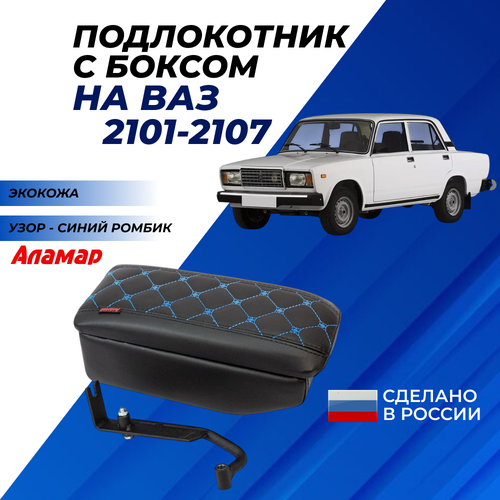 - Подлокотник ВАЗ 2105, 2107 с боксом, автомобильный центральный из экокожи с узором - синий ромб "Аламар" – аксессуар авто, который обеспечивает комфорт водителя и пассажиров. Если рука лежит на подлокотнике, снижается нагрузка на мышцы плеча и предплечья, уменьшается чувство усталости.