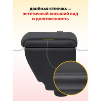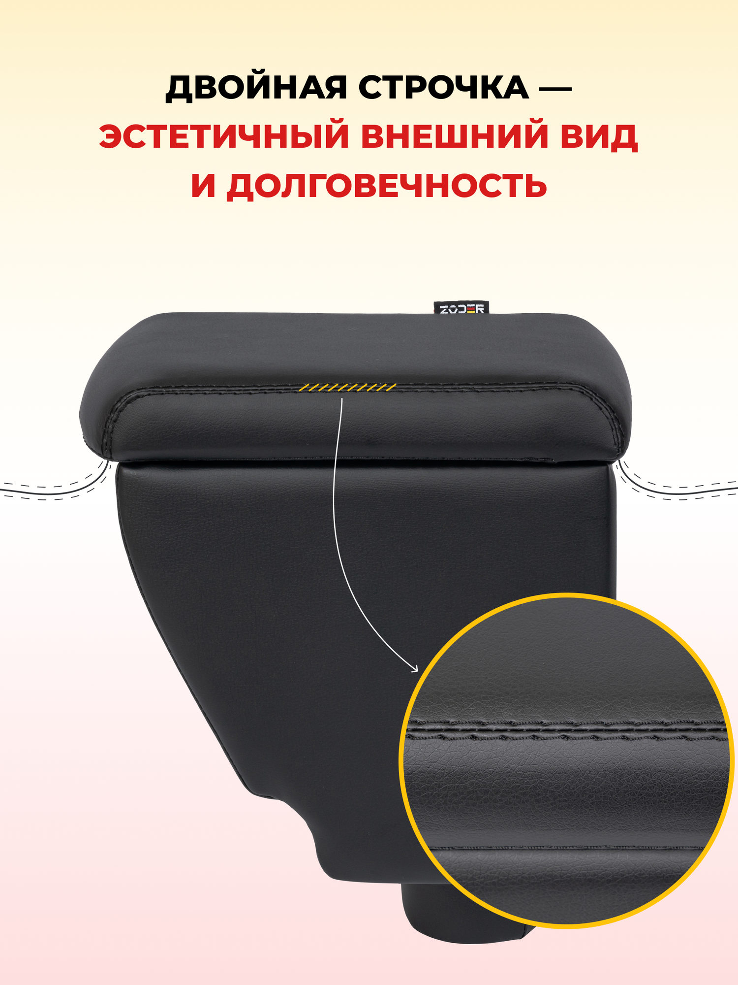 Выполнен из высококлассной фурнитуры и износостойкой экокожи марки Oregon. Материалы не становятся жесткими на морозе и не теряют своих качеств под воздействием солнечных лучей (от -40С до +60С) - подлокотник для автомобиля Хендай прослужит вам долго и надежно зимой и летом!