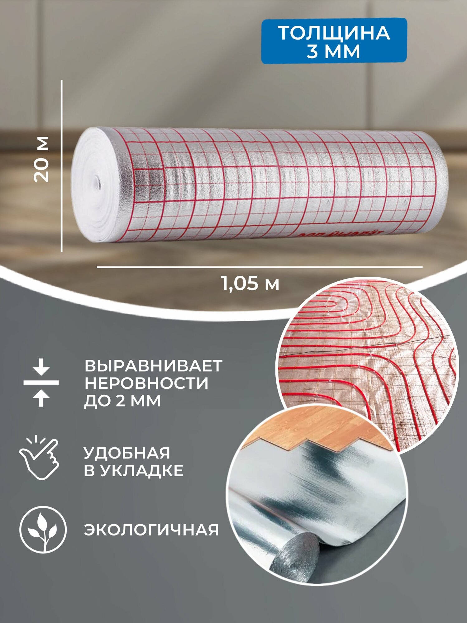 Подложка фольгированная для теплого пола с разметкой, Тепофол толщина 3 мм 1.05х20 м.: сравнение цен, характеристики, фото, актуальное наличие и цены.
