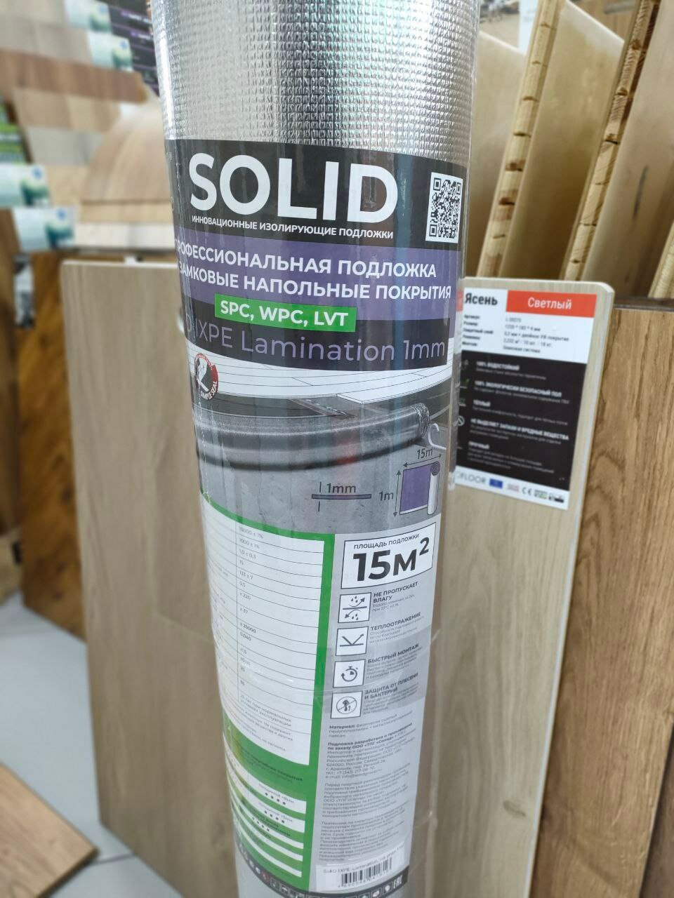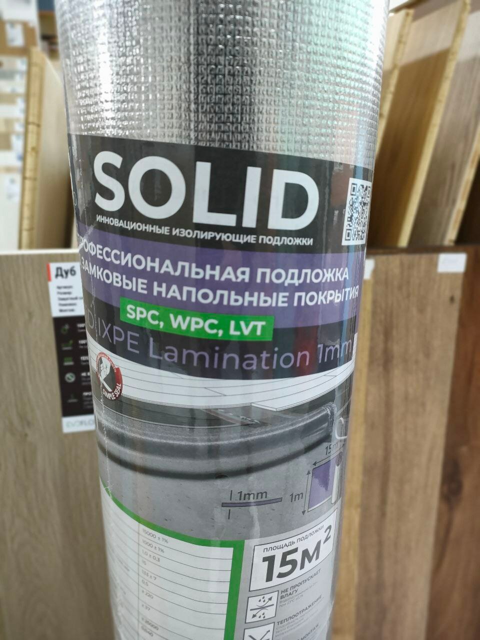 Профессиональные подложки SoliD IXPE, специально разработанные для замковых напольных покрытий SPC и WPC, укладываемых плавающим способом. SoliD IXPE — это защита замков напольного покрытия от повреждений, обеспечивающая долгосрочную сохранность покрытия. Влагостойкость и долговечность - подложка не теряет своих свойств, обеспечивая надежность на протяжении многих лет. Безопасный и экологичный материал - подходит для любых помещений, не выделяет вредных веществ. Не нужно фиксировать или приклеивать подложку к основанию или стенам. Не укладывайте подложку в несколько слоёв. Подложка совместима с системами "тёплый пол", но рабочая температура не должна превышать +35°С. Специальный клапан-оверлап для приклеивания по всей длине стыковки полотен. Защита от грибка.