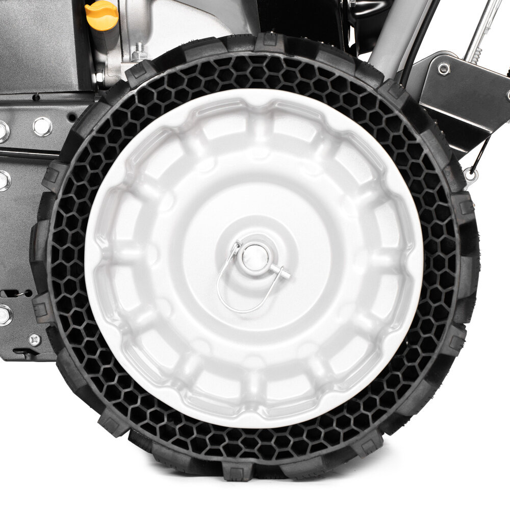 | Дополнительная информация | Уникальные колеса EX‑ICE WHEELS Широкие безвоздушные колеса созданы специально для снегоуборщиков. Колеса EX‑ICE обладают лучшим сцеплением с поверхностью среди всех зимних шин. Лучшая проходимость в классе подметальных машин. |