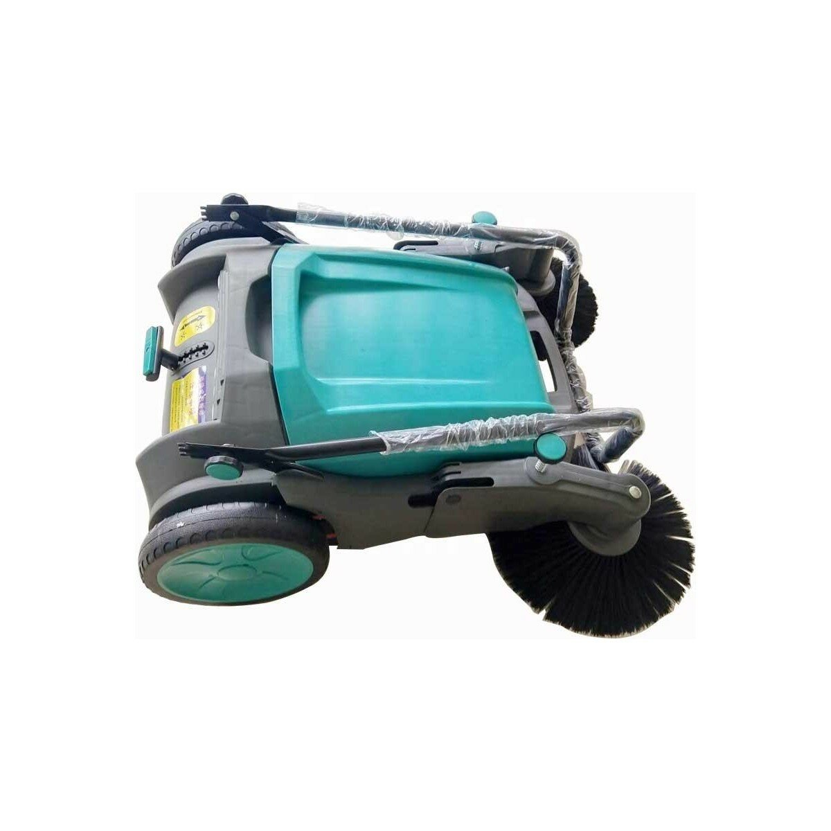 Подметальная механическая машина TOR JH-960T представляет собой ручное передвижное устройство, оснащенное ручкой и колесами. Для уборки мусора служат вращающиеся щетки. При уборке исключается прямой контакт человека с мусором. Механизм приводится в действие через ременной привод от движущихся колес. Вращающиеся подметальные щетки TOR JH-960T собирают и направляют мусор в специальный съемный контейнер. Складная ручка делает машину компактной, удобной для хранения и транспортировки. Использование TOR JH-960T не требует особого профессионализма и чрезмерных усилий работника. Механический привод от вращения колес делает работу подметальной машины полностью энергонезависимой. Технические характеристики: производительность 4200м2/ч, ширина подметания 100см, диаметр щетки 35см