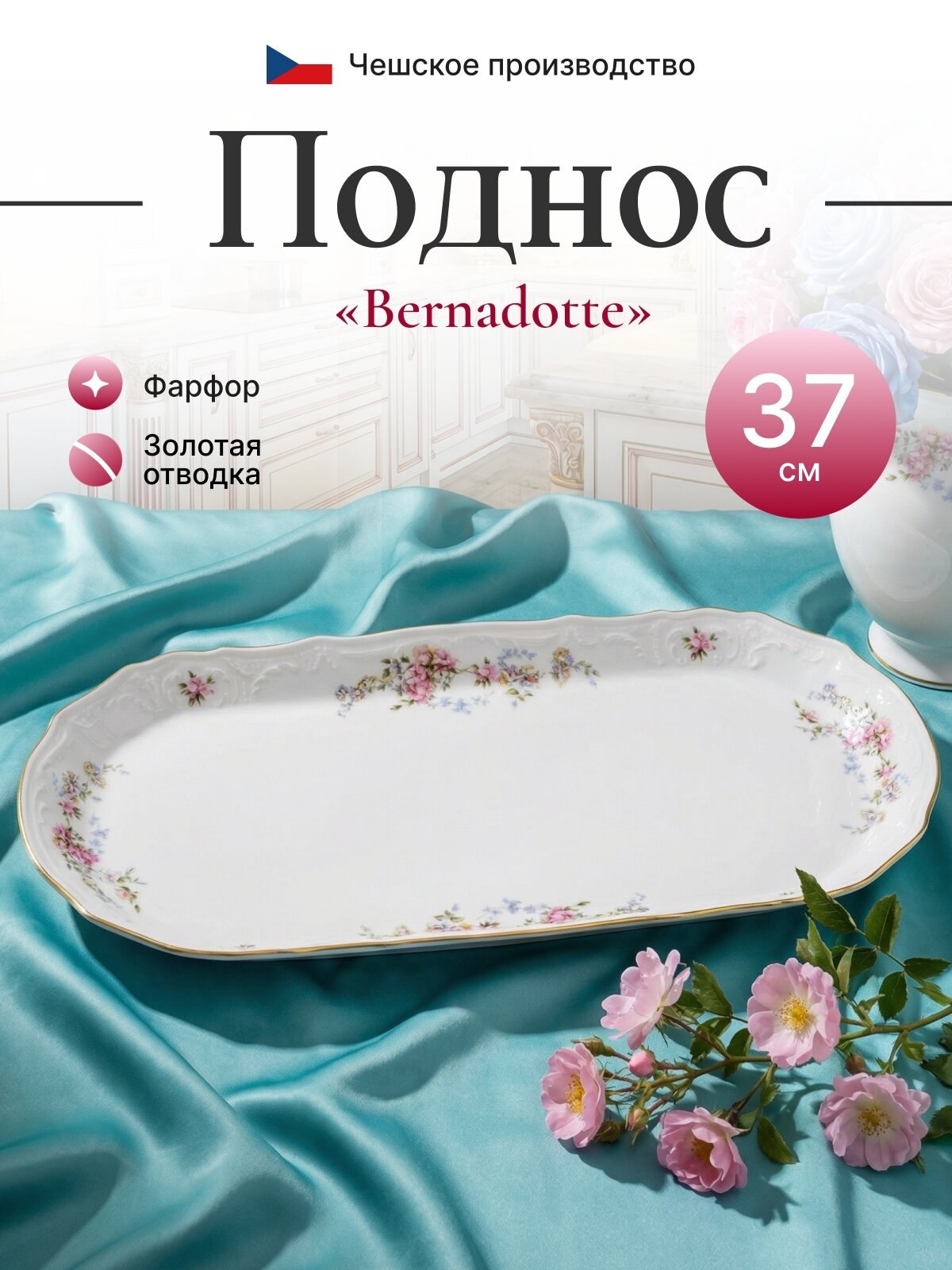Поднос 37 см Bernadotte декор «Дикая роза отводка золото»: сравнение цен, характеристики, фото, актуальное наличие и цены.