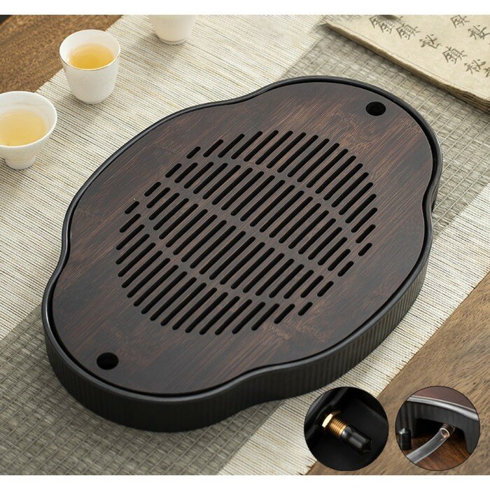 Чабань для чайной церемонии джекичай, 45×31×3.8 см, бамбук, чёрный поддон (комплект из 2 шт)