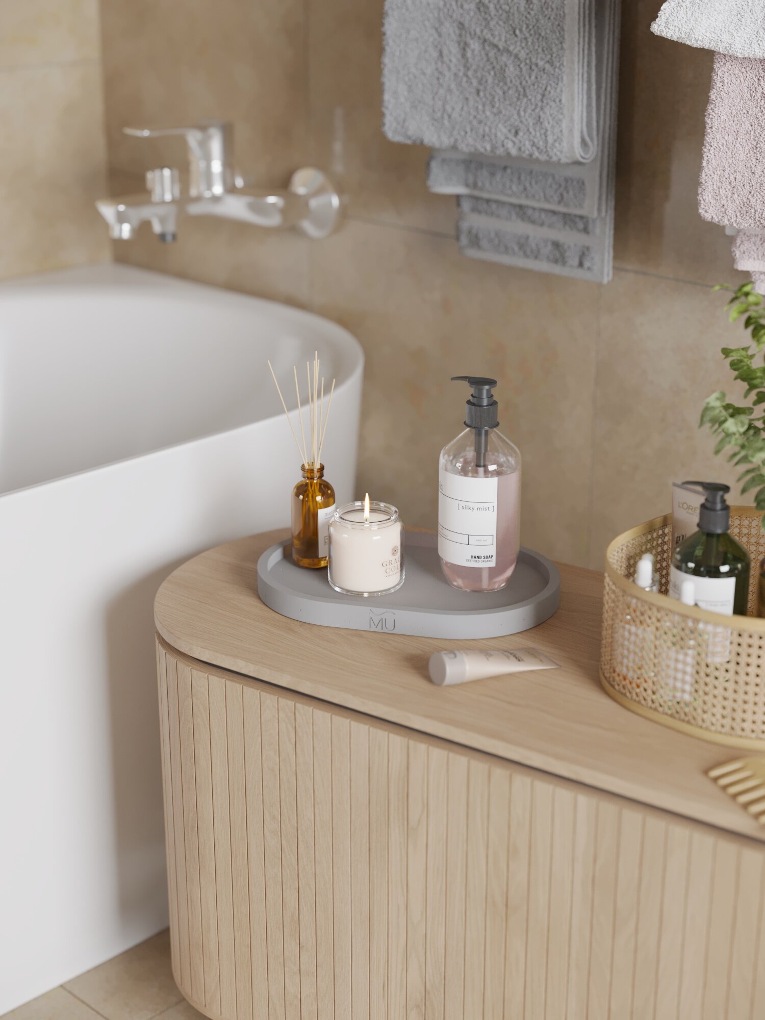 Поднос для ванной Lora XL, 30×20 см, декоративная подставка, бетон, серый матовый: сравнение цен, характеристики, фото, актуальное наличие и цены.