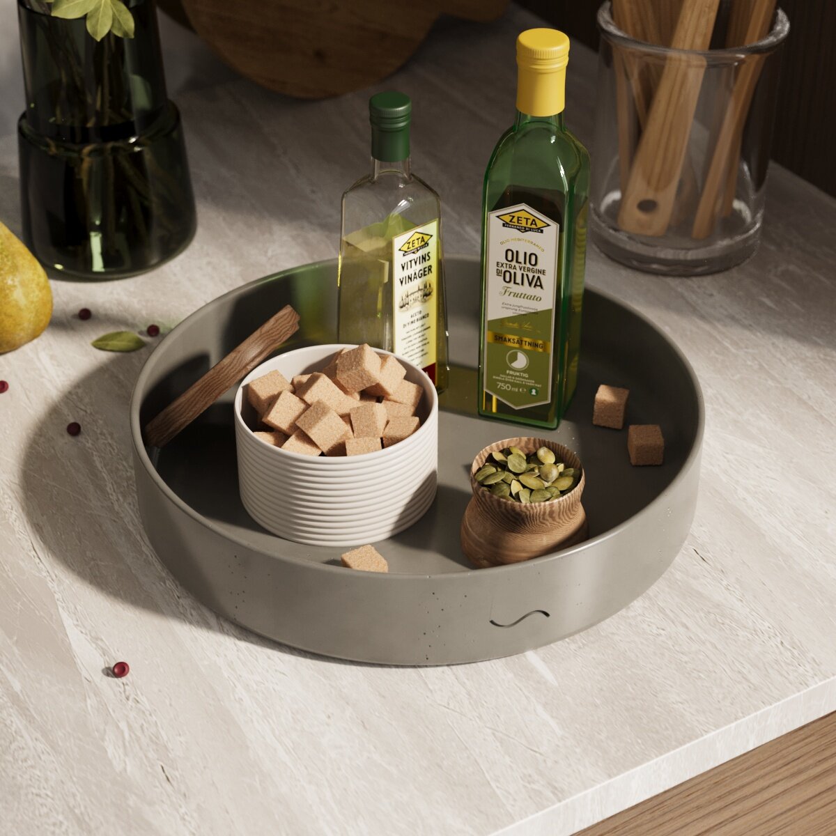 Подставка для кухонных аксессуаров из коллекции Astrid от MUSKO HOME - это универсальный кухонный поднос, изготовленный вручную из особо прочного бетона. Изделие обработано водоотталкивающим лаком, надёжно защищающим текстуру от воды и грязи.