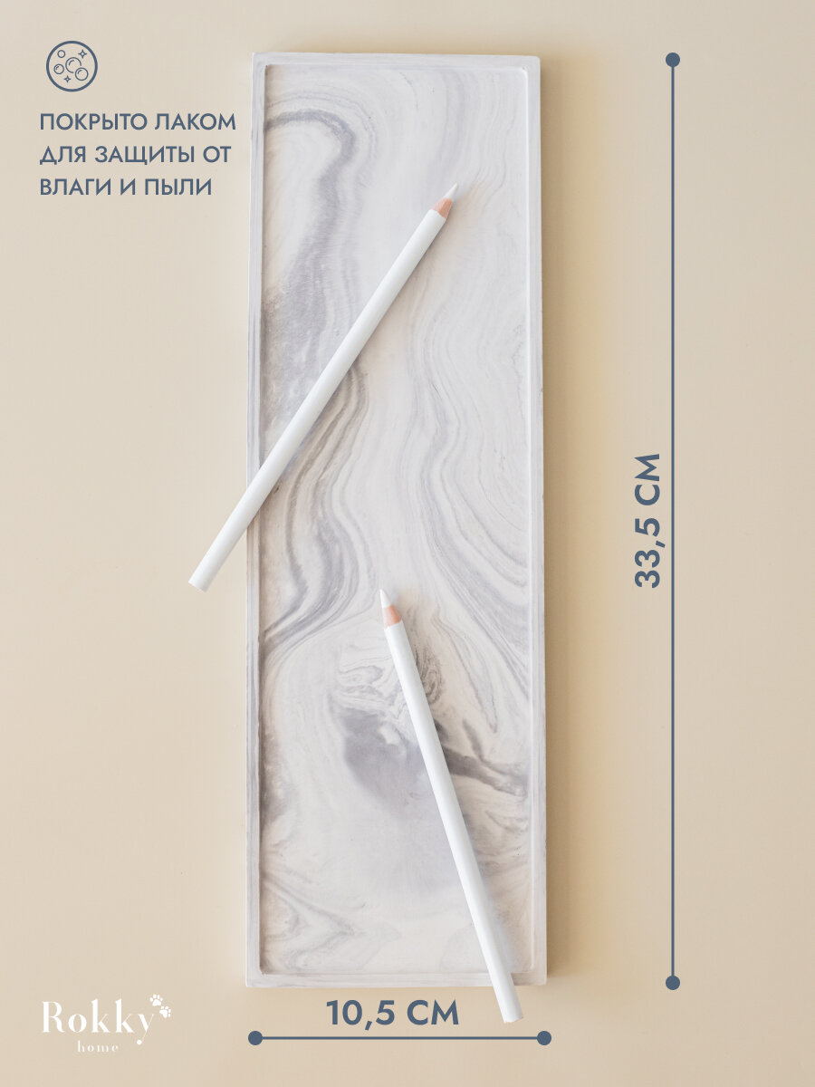 Декоративный поднос, изготовленный из особо прочного архитектурного бетона, умного скульптурного гипса. Прямоугольная подставка имеет бортики от проливания или скатывающихся предметов, может использоваться для украшений, мелочей, косметики, свечей, завтрака, сервировки, журнальный, кухонный, ванной, косметический или для кашпо. Декоративная тарелка обработана специальным водоотталкивающим составом, который защищает от воды и грязи. Изделие не боится влажности и его можно использовать в ванной комнате. Статуэтка-столик обладают лаконичным дизайном и прекрасно впишутся в любой интерьер дома и комнаты, и органично будут смотреться в минималистичных и экологичных стилей (cканди, джапанди, лофт). Подставка идеально дополнит дизайн комнаты в спальне, на кухне, в гостиной и в другом интерьере дома. Подойдет для лофт, скандинавского, классического и других стилей интерьера. Хранить украшения красиво и необычно поможет наш интерьерный набор. Подарок лучше всех подойдет женщине, маме, коллеге, сестре, подруге на день рождения и просто так, без повода, чтобы порадовать близких и любимых. Для удобства и безопасности в комплекте прилагаются самоклеящиеся фетровые и силиконовые накладки. Ручная работа делает каждый экземпляр уникальным, а структура допускает наличие мелких воздушных пор на поверхности, которые придают творческой менажнице фактурность. Цвета: белый, светло-серый, мрамор.