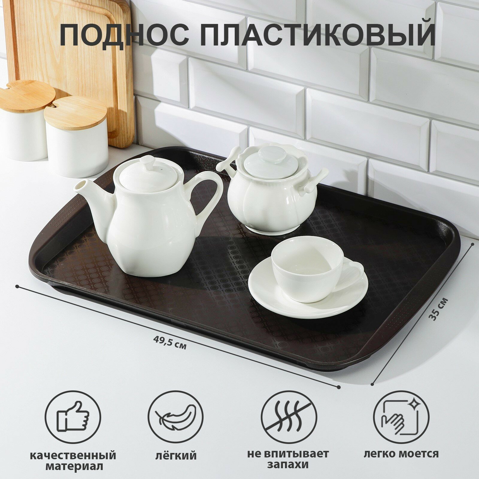 Поднос RESTOLA, 49.5×35 см, пластик, коричневый: сравнение цен, характеристики, фото, актуальное наличие и цены.