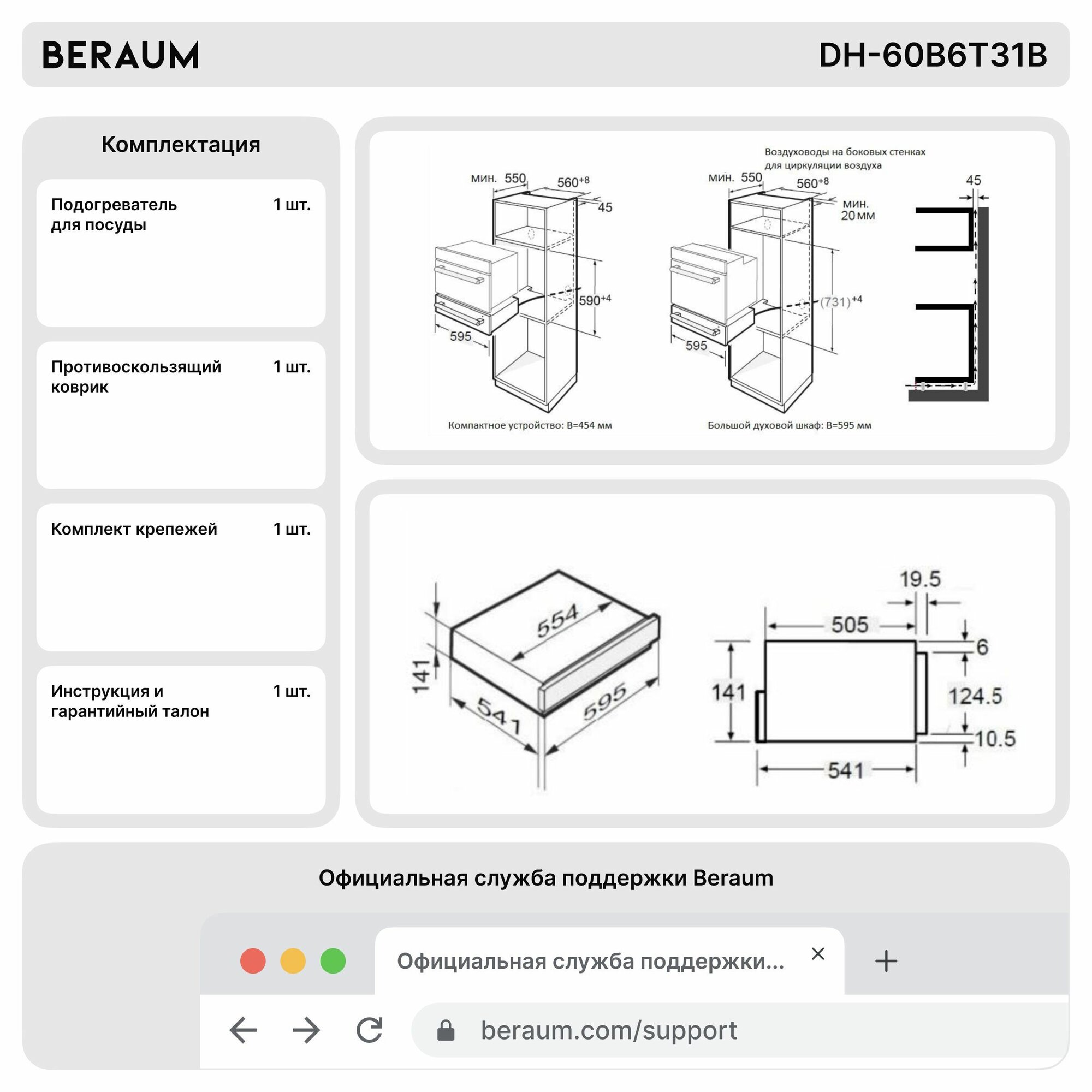 Подогреватель посуды встраиваемый Beraum DH-60B6T31B, подогрев еды и напитков, поддержание температуры: сравнение цен, характеристики, фото, актуальное наличие и цены.